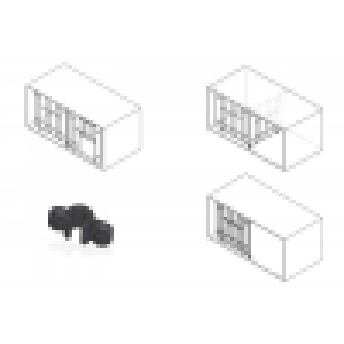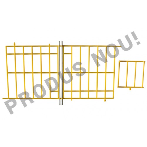 Decupati intrarea in dreptul usitei culisante. La mijlocul latimii boxei, in partea din fata, faceti doua gauri (sus si jos) pentru montarea celor doua tije care vor functiona pe post de balamale. Cele doua usite rotindu-se si pozitionandu-se dupa preferintele dumneavoastra - conform imaginilor de mai jos. Prindeti cele sapte clipsuri cu ajutorul holzsuruburilor in podeaua respectiv tavanul boxei pentru fixarea si rigidizarea usitelor.